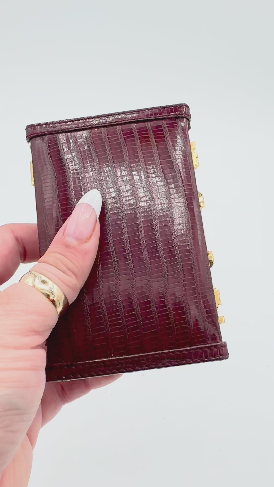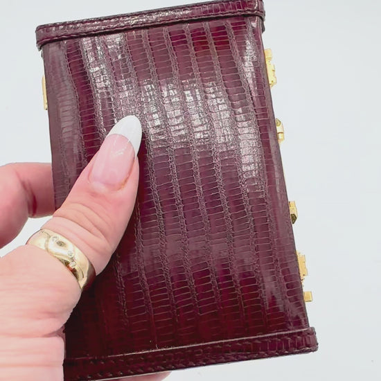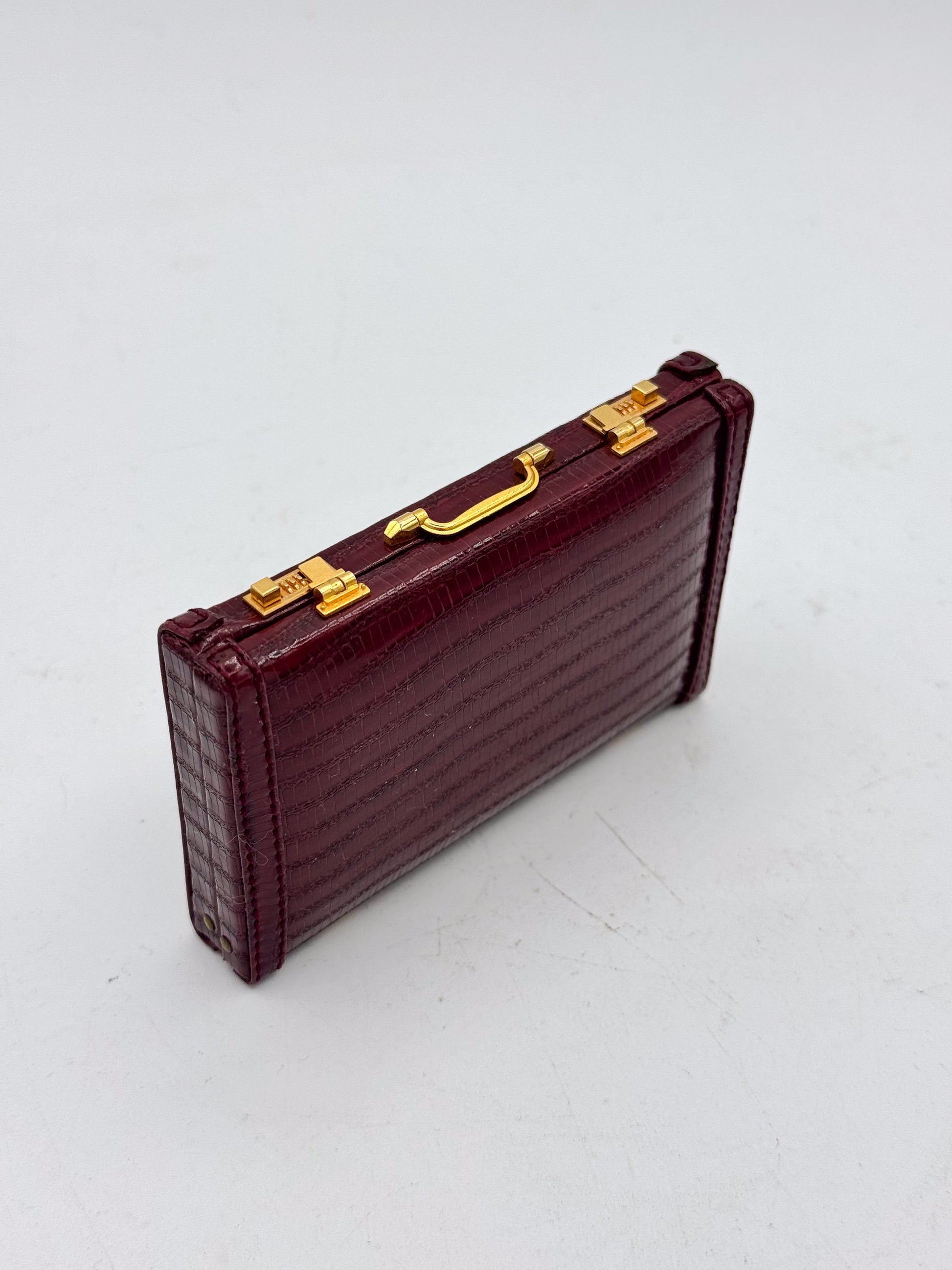 Mini Briefcase Business Card Holder Burgundy Faux-Croc — NOS with Mirror 1990s