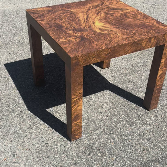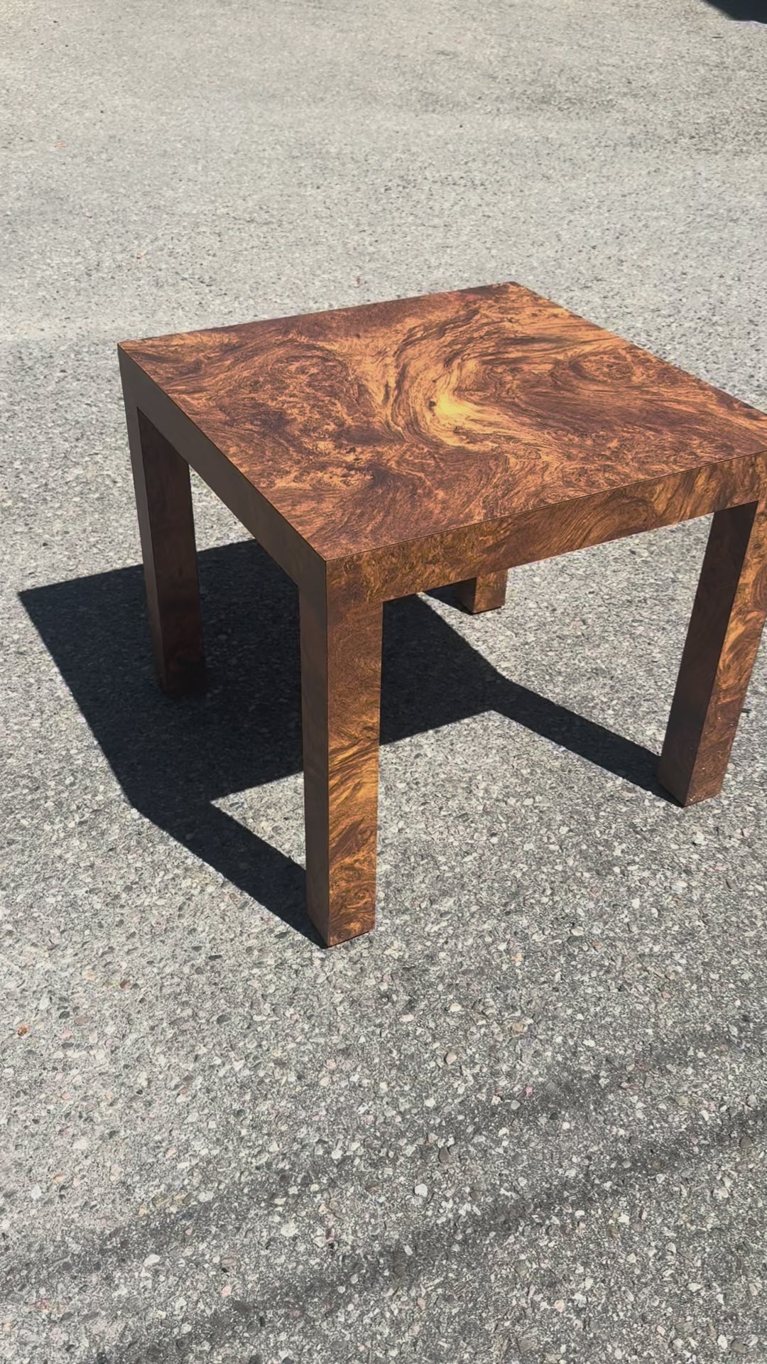 Vintage 1980s Laminated Burlwood Side Table Mid Century